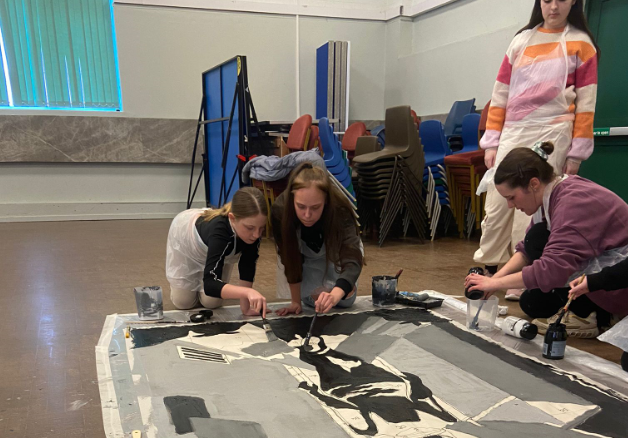 So, what are we doing this year for the ‘Wowsers’ programme? Well, we met with the Bramley Youth Group in early April and explored the themes for the upcoming Wow Festival which were: gender identity, safety, mental health and similar topics. We discussed these themes in depth with them and they decided they felt most connected to safety and how they felt walking home alone at night. We then asked them what art medium they wanted to explore for this topic. They were nervous at first, most felt like they had no artistic abilities at all. But after some discussion, we settled on splatter art, this requires little intricacy and is an easy art form for anyone to explore. They also came up with the wonderful idea of a large scale mural in which a young girl is pictured in the centre and surrounded by scary thoughts that the young girls themselves think when they walk home alone. On the day of the festival, they decided they wanted attendees to throw paint and press their hand prints to cover these scary thoughts. We loved this idea and took it to the festival organisers, they loved the idea as well and with that, we began making arrangements!